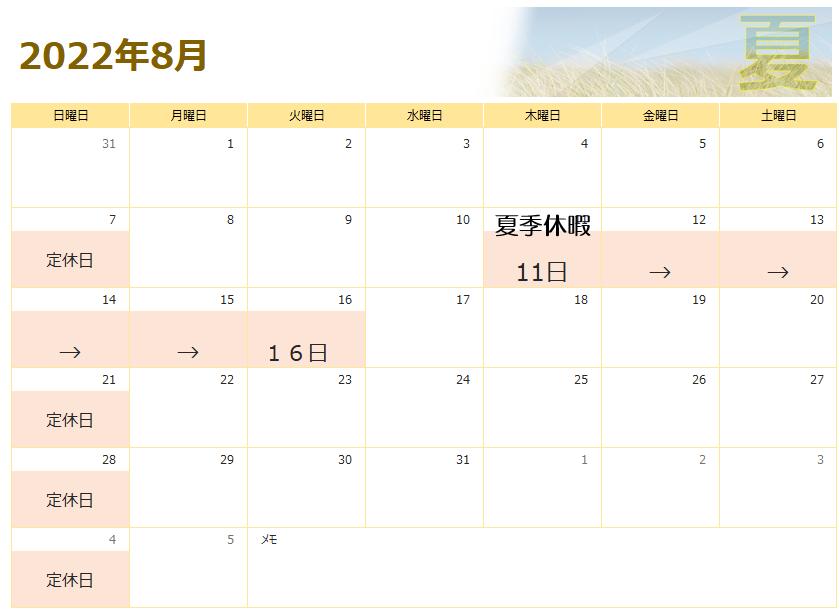 8月11日(木)~16日(火)は
