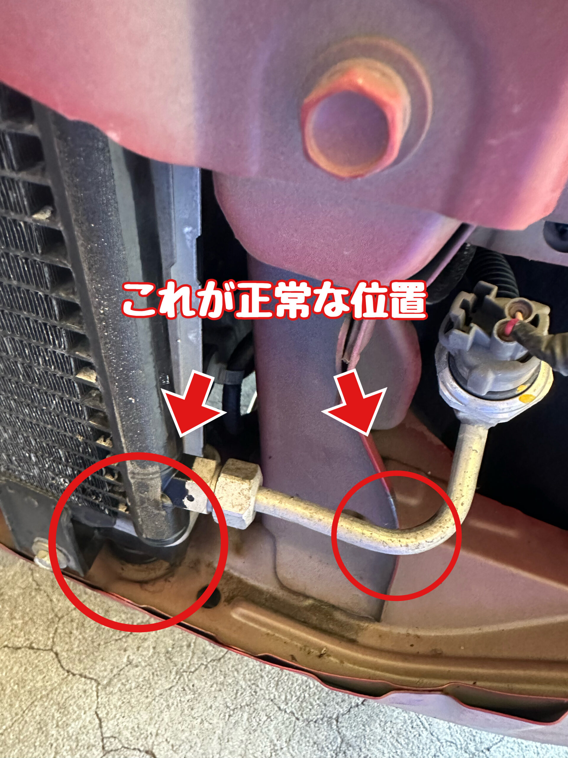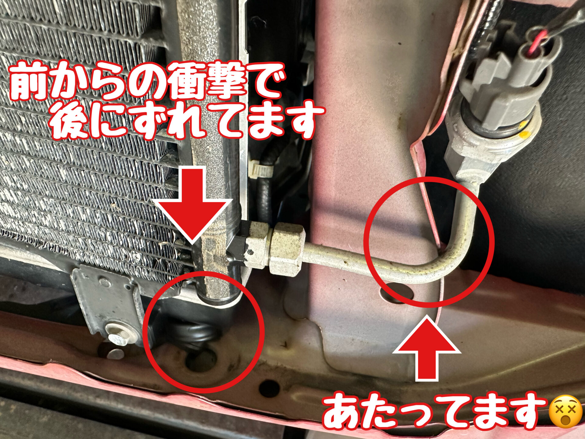 クーラーのパイプがフレームに干渉した