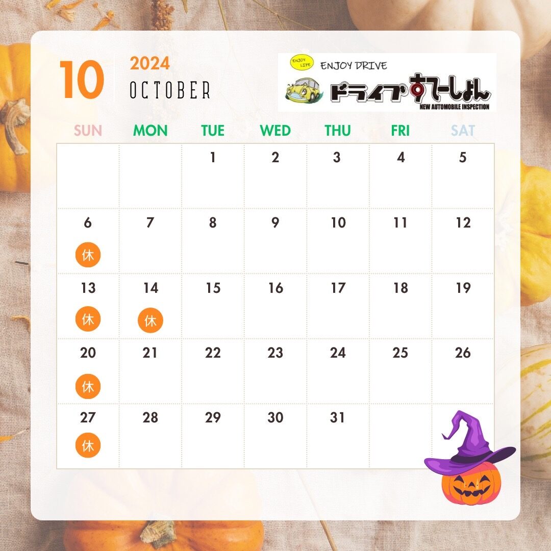10月の営業日・店休日です。
