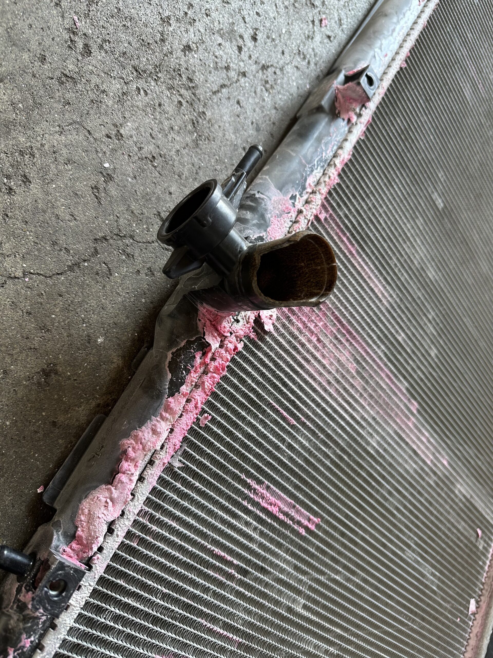赤いラジエーター水が漏れています